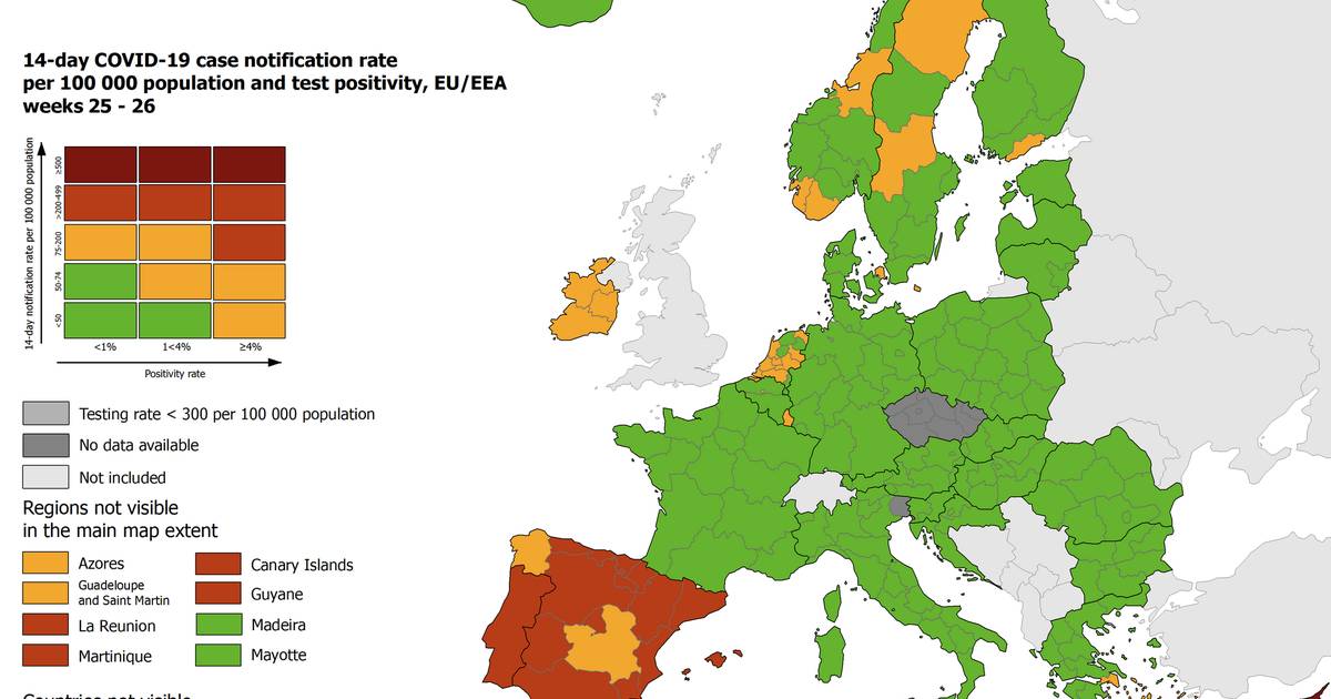 Voor een overzicht van de europese reissituatie kan de kaart van het european centre for disease prevention and control (ecdc) worden geraadpleegd (deze wordt elke woensdag bijgewerkt). Enkel het roodgekleurde luxemburg doet het slechter. Dat betekent dat er, vanuit landen die de coronarisico's per regio analyseren, binnenkort geen reisbeperkingen meer zijn naar de provincie. Afstand houden, handen wassen, mondmasker dragen. Vlaanderen is donkeroranje gekleurd op de europese coronakaart.